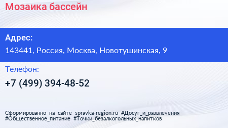 Мозаика, бассейн по адресу 143441, Россия, Москва, Новотушинская, 9 в дальнейшем Организация, размещена в следующих категориях: