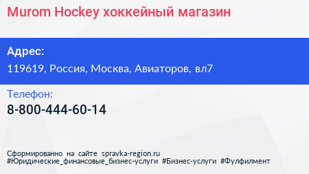 Murom Hockey, хоккейный магазин по адресу 119619, Россия, Москва, Авиаторов, вл7 в дальнейшем Организация, размещена в следующих категориях: