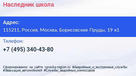 Наследник, школа по адресу 115211, Россия, Москва, Борисовские Пруды, 19 к1 в дальнейшем Организация, размещена в следующих категориях: