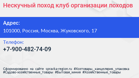 Нескучный поход, клуб организации походов по адресу 101000, Россия, Москва, Жуковского, 17 в дальнейшем Организация, размещена в следующих категориях: