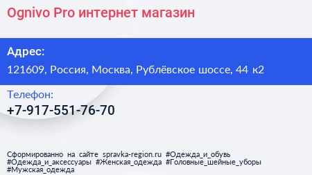 Ognivo Pro, интернет-магазин по адресу 121609, Россия, Москва, Рублёвское шоссе, 44 к2 в дальнейшем Организация, размещена в следующих категориях: