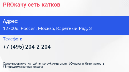 PROкачу, сеть катков по адресу 127006, Россия, Москва, Каретный Ряд, 3 в дальнейшем Организация, размещена в следующих категориях: