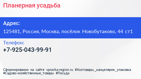 Планерная, усадьба по адресу 125481, Россия, Москва, посёлок Новобутаково, 44 ст1 в дальнейшем Организация, размещена в следующих категориях: