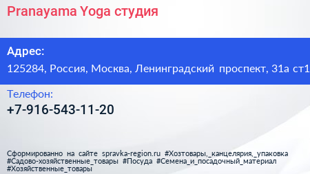 Pranayama Yoga, студия по адресу 125284, Россия, Москва, Ленинградский проспект, 31а ст1 в дальнейшем Организация, размещена в следующих категориях: