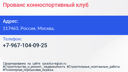 Прованс, конноспортивный клуб по адресу 117463, Россия, Москва, в дальнейшем Организация, размещена в следующих категориях: