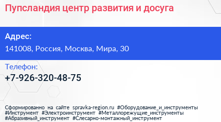 Пупсландия, центр развития и досуга по адресу 141008, Россия, Москва, Мира, 30 в дальнейшем Организация, размещена в следующих категориях:
