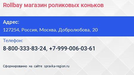 Rollbay, магазин роликовых коньков по адресу 127254, Россия, Москва, Добролюбова, 20 в дальнейшем Организация, размещена в следующих категориях: