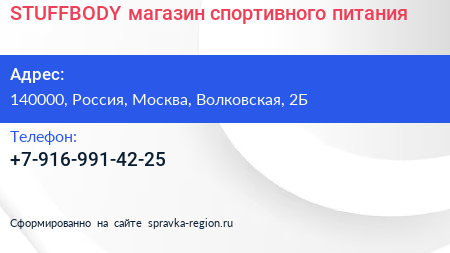 STUFFBODY, магазин спортивного питания по адресу 140000, Россия, Москва, Волковская, 2Б в дальнейшем Организация, размещена в следующих категориях: