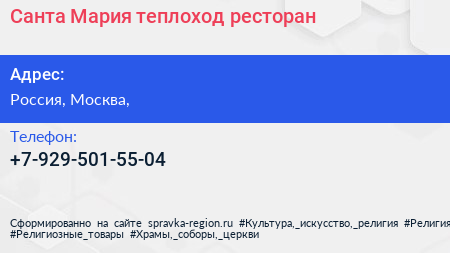 Санта Мария, теплоход-ресторан по адресу Россия, Москва, в дальнейшем Организация, размещена в следующих категориях: