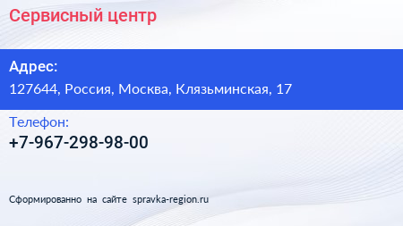 Сервисный центр по адресу 127644, Россия, Москва, Клязьминская, 17 в дальнейшем Организация, размещена в следующих категориях: