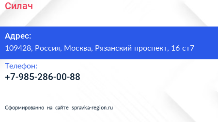 Силач по адресу 109428, Россия, Москва, Рязанский проспект, 16 ст7 в дальнейшем Организация, размещена в следующих категориях: