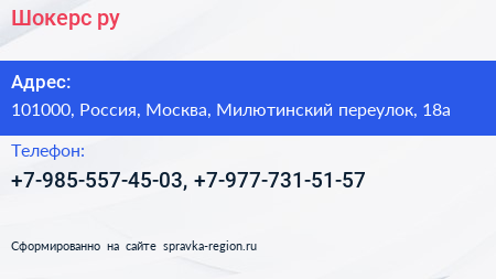 Шокерс.ру по адресу 101000, Россия, Москва, Милютинский переулок, 18а в дальнейшем Организация, размещена в следующих категориях: