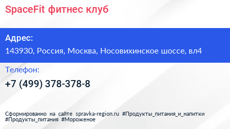 SpaceFit, фитнес-клуб по адресу 143930, Россия, Москва, Носовихинское шоссе, вл4 в дальнейшем Организация, размещена в следующих категориях: