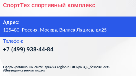 СпортТех, спортивный комплекс по адресу 125480, Россия, Москва, Вилиса Лациса, вл25 в дальнейшем Организация, размещена в следующих категориях: