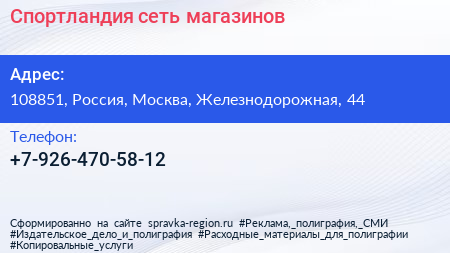 Спортландия, сеть магазинов по адресу 108851, Россия, Москва, Железнодорожная, 44 в дальнейшем Организация, размещена в следующих категориях: