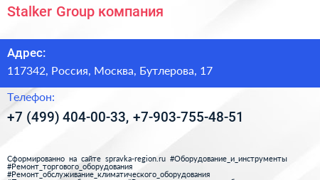 Stalker Group, компания по адресу 117342, Россия, Москва, Бутлерова, 17 в дальнейшем Организация, размещена в следующих категориях: