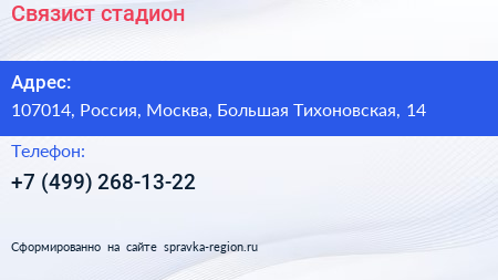 Связист, стадион по адресу 107014, Россия, Москва, Большая Тихоновская, 14 в дальнейшем Организация, размещена в следующих категориях:
