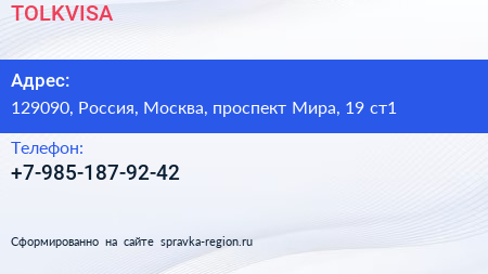 TOLKVISA по адресу 129090, Россия, Москва, проспект Мира, 19 ст1 в дальнейшем Организация, размещена в следующих категориях: