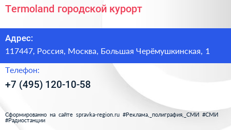 Termoland, городской курорт по адресу 117447, Россия, Москва, Большая Черёмушкинская, 1 в дальнейшем Организация, размещена в следующих категориях: