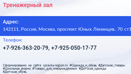 Тренажерный зал по адресу 142111, Россия, Москва, проспект Юных Ленинцев, 70 ст1 в дальнейшем Организация, размещена в следующих категориях: