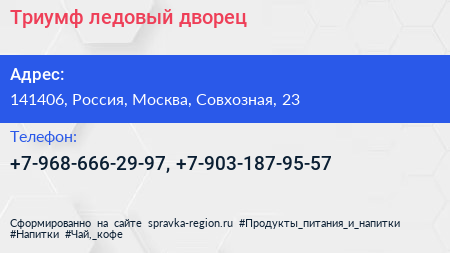 Триумф, ледовый дворец по адресу 141406, Россия, Москва, Совхозная, 23 в дальнейшем Организация, размещена в следующих категориях: