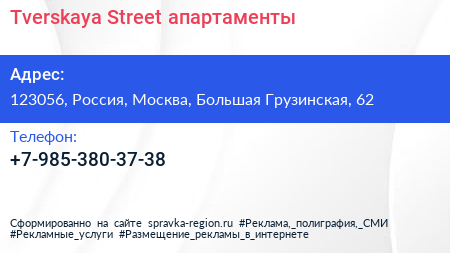 Tverskaya Street, апартаменты по адресу 123056, Россия, Москва, Большая Грузинская, 62 в дальнейшем Организация, размещена в следующих категориях: