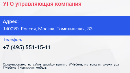 УГО, управляющая компания по адресу 140090, Россия, Москва, Томилинская, 33 в дальнейшем Организация, размещена в следующих категориях: