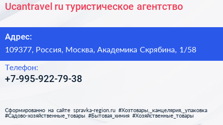 Ucantravel.ru, туристическое агентство по адресу 109377, Россия, Москва, Академика Скрябина, 1/58 в дальнейшем Организация, размещена в следующих категориях: