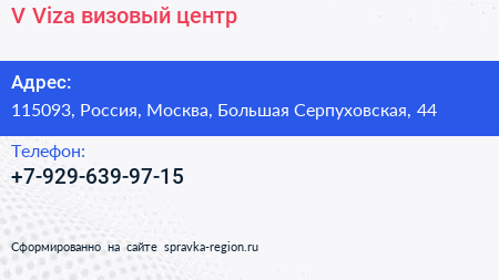 V-Viza, визовый центр по адресу 115093, Россия, Москва, Большая Серпуховская, 44 в дальнейшем Организация, размещена в следующих категориях: