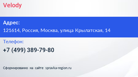 Velody по адресу 121614, Россия, Москва, улица Крылатская, 14 в дальнейшем Организация, размещена в следующих категориях: