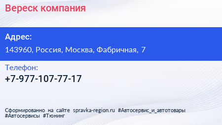 Вереск, компания по адресу 143960, Россия, Москва, Фабричная, 7 в дальнейшем Организация, размещена в следующих категориях: