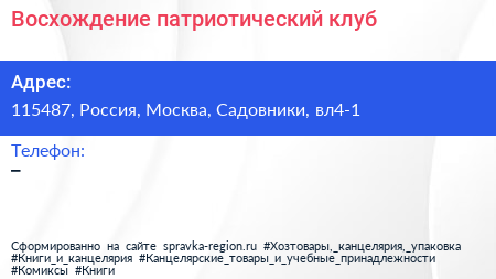 Восхождение, патриотический клуб по адресу 115487, Россия, Москва, Садовники, вл4-1 в дальнейшем Организация, размещена в следующих категориях: