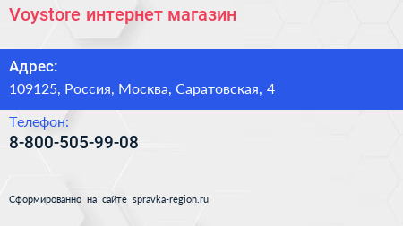 Voystore, интернет-магазин по адресу 109125, Россия, Москва, Саратовская, 4 в дальнейшем Организация, размещена в следующих категориях: