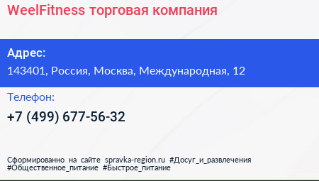 WeelFitness, торговая компания по адресу 143401, Россия, Москва, Международная, 12 в дальнейшем Организация, размещена в следующих категориях: