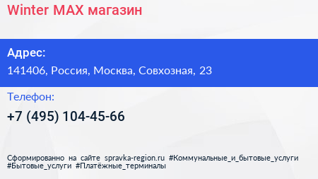 Winter MAX, магазин по адресу 141406, Россия, Москва, Совхозная, 23 в дальнейшем Организация, размещена в следующих категориях: