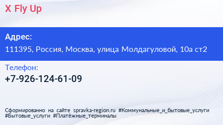 X Fly Up по адресу 111395, Россия, Москва, улица Молдагуловой, 10а ст2 в дальнейшем Организация, размещена в следующих категориях: