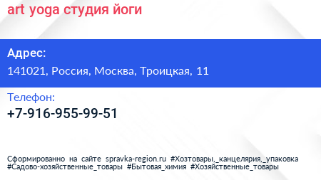 аrt-yoga, студия йоги по адресу 141021, Россия, Москва, Троицкая, 11 в дальнейшем Организация, размещена в следующих категориях: