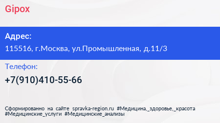 Gipox по адресу 115516, г.Москва, ул.Промышленная, д.11/3 в дальнейшем Организация, размещена в следующих категориях: