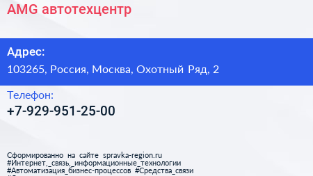 AMG, автотехцентр по адресу 103265, Россия, Москва, Охотный Ряд, 2 в дальнейшем Организация, размещена в следующих категориях: