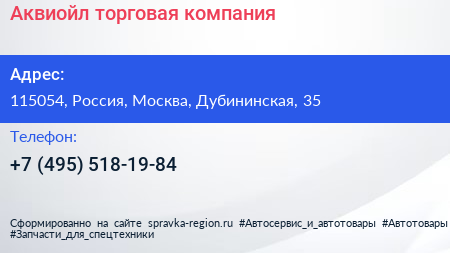 Аквиойл, торговая компания по адресу 115054, Россия, Москва, Дубининская, 35 в дальнейшем Организация, размещена в следующих категориях: