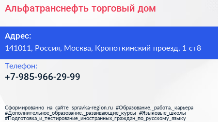 Альфатранснефть, торговый дом по адресу 141011, Россия, Москва, Кропоткинский проезд, 1 ст8 в дальнейшем Организация, размещена в следующих категориях: