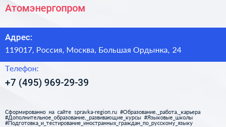Атомэнергопром по адресу 119017, Россия, Москва, Большая Ордынка, 24 в дальнейшем Организация, размещена в следующих категориях: