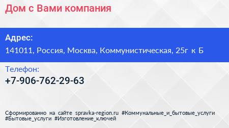 Дом с Вами, компания по адресу 141011, Россия, Москва, Коммунистическая, 25г к Б в дальнейшем Организация, размещена в следующих категориях: