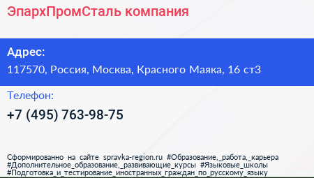 ЭпархПромСталь, компания по адресу 117570, Россия, Москва, Красного Маяка, 16 ст3 в дальнейшем Организация, размещена в следующих категориях: