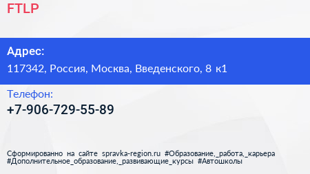 FTLP по адресу 117342, Россия, Москва, Введенского, 8 к1 в дальнейшем Организация, размещена в следующих категориях:
