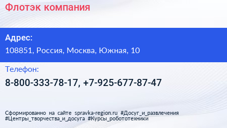 Флотэк, компания по адресу 108851, Россия, Москва, Южная, 10 в дальнейшем Организация, размещена в следующих категориях: