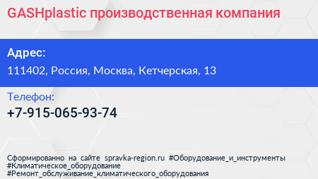 GASHplastic, производственная компания по адресу 111402, Россия, Москва, Кетчерская, 13 в дальнейшем Организация, размещена в следующих категориях: