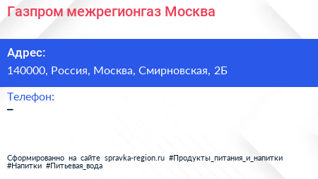 Газпром межрегионгаз Москва по адресу 140000, Россия, Москва, Смирновская, 2Б в дальнейшем Организация, размещена в следующих категориях: