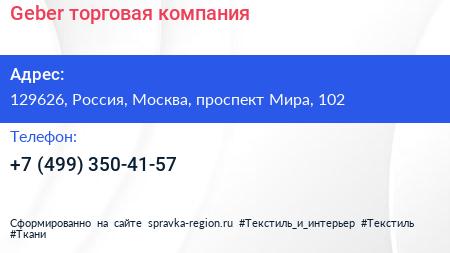 Geber, торговая компания по адресу 129626, Россия, Москва, проспект Мира, 102 в дальнейшем Организация, размещена в следующих категориях: