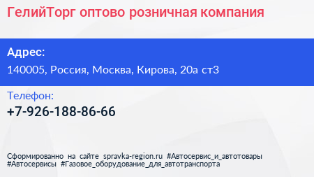 ГелийТорг, оптово-розничная компания по адресу 140005, Россия, Москва, Кирова, 20а ст3 в дальнейшем Организация, размещена в следующих категориях: